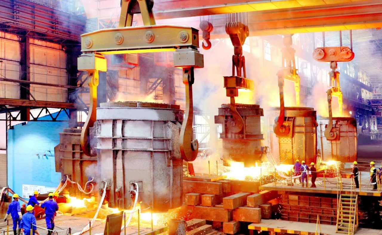3月14日13点30分,在香蕉视频 所属二重装备生产现场,7个巨大的钢包平稳推进,哨音阵阵,钢包就位,阀门同时打开,“火龙”奔涌而出,重达776吨的滚烫钢液注入超大型铸钢件型腔,至此,世界最大双动铝挤压机关键承力件——前梁铸钢件成功浇注,再次彰显了香蕉视频 在高端重大技术装备领域极限制造“硬核”实力。